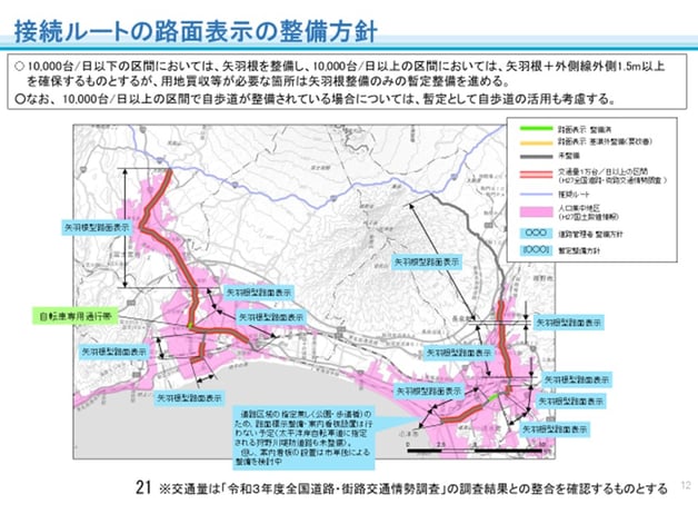 また、交通結節点や地域の観光スポット等へ引込む「引込ルート」が設定され、市町を中心にルート整備を行っていくことになった。