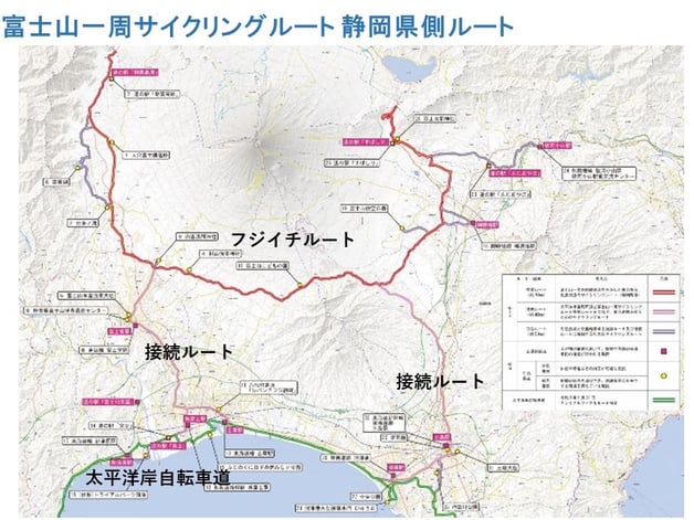 富士山一周サイクリング(フジイチ)ルートを国のナショナルサイクルルート指定を目指していくように静岡県と山梨県が連携して運動を展開している。