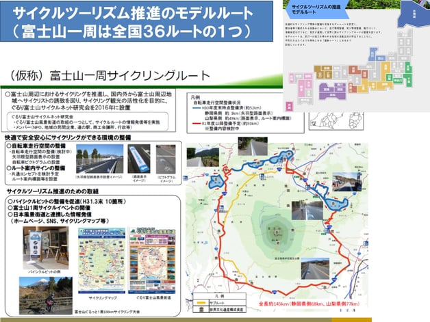 官民で検討し、推奨ルートとなっておりますが、静岡県・山梨県両県の「県自転車活用推進計画」にもモデルルートとして位置付けられました。